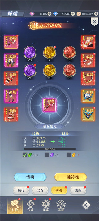 直接鑄魂:進入各裝備的頁面均有一鍵提升功能自動消耗所需材料對應的鑄魂石